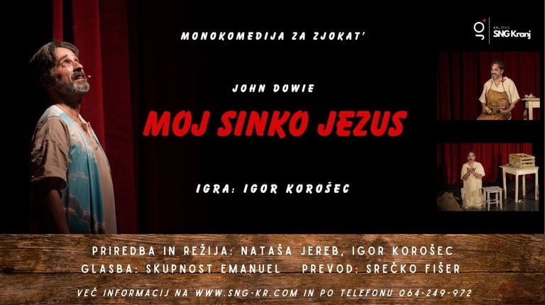 Predstava "Moj sinko Jezus" je duhovita, iskrena in ganljiva pripoved o moškem, ki išče smisel med vero, dvomom in ljubeznijo. Ni ne pridiga ne parodija — ampak človeška zgodba, ki se dotakne srca vsakega, ki je kdaj verjel, dvomil ali samo skušal razumeti.