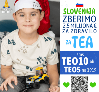 Za Tea lahko prispevate donacijo z SMS s ključno besedo TEO10 ali TEO5 na 1919